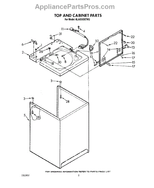 Parts for Whirlpool 6LA6300XTN2: 02 - Top And Cabinet, Lit / Optional Parts
