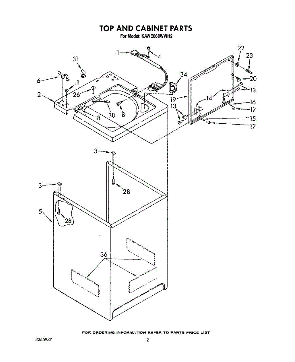 Parts for Kitchenaid KAWE660WWH2: 02 - Top And Cabinet, Lit / Optional Parts
