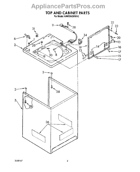 Parts for Kitchenaid KAWE842WAL2: 02 - Top And Cabinet, Lit / Optional Parts