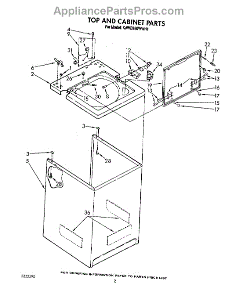 Parts for Kitchenaid KAWE860WAL1: 02 - Top And Cabinet, Lit / Optional Parts