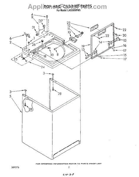 Parts for Whirlpool LA5500XPW5: 02 - Top And Cabinet , Literature And Optional Parts