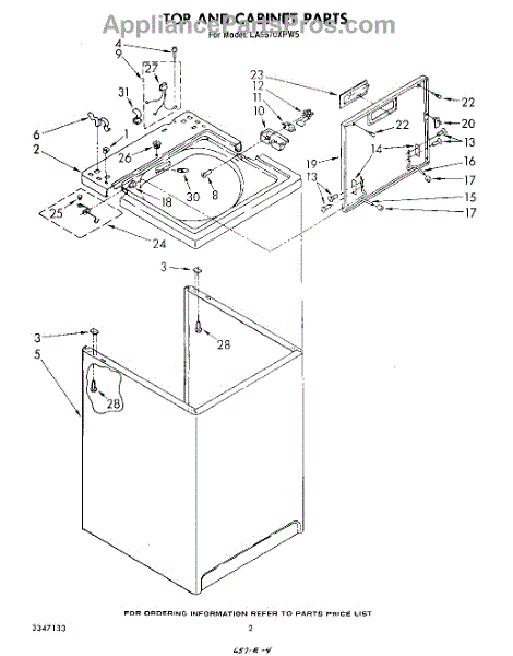 Parts for Whirlpool LA5570XPW5: 02 - Top And Cabinet, Literature And Optional Parts