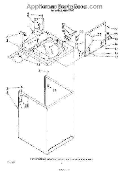 Parts for Whirlpool LA5800XTW0: 02 - Top And Cabinet , Literature And Optional Parts