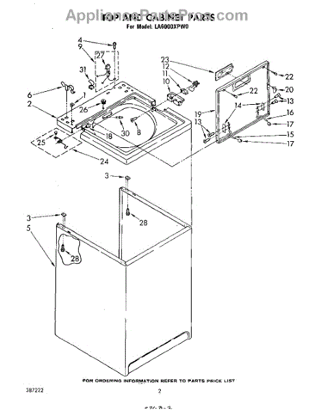 Parts for Whirlpool LA6000XPW0: 02 - Top And Cabinet , Literature And Optional Parts