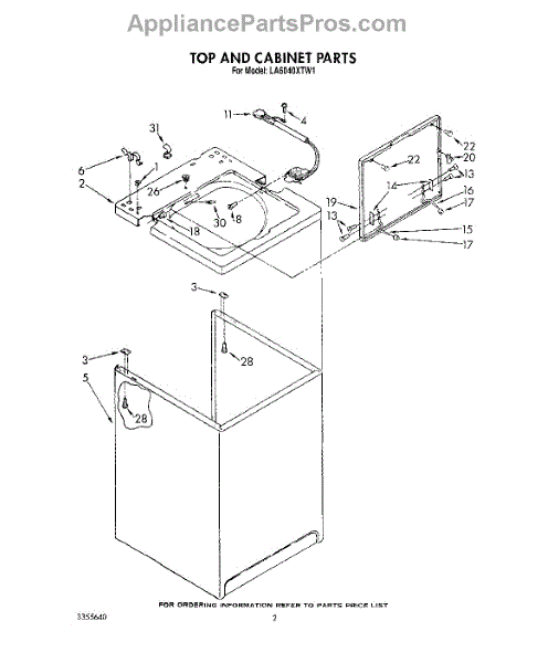 Parts for Whirlpool LA6040XTF1: 02 - Top And Cabinet , Lit / Optional Parts