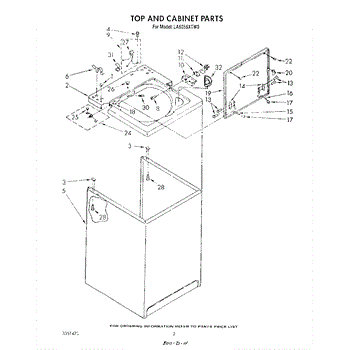 Parts for Whirlpool LA6058XTW0: 02 - Top And Cabinet , Literature And Optional Parts