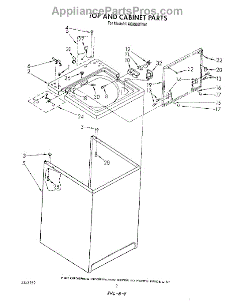 Parts for Whirlpool LA6098XTW0: 02 - Top And Cabinet , Literature And Optional Parts