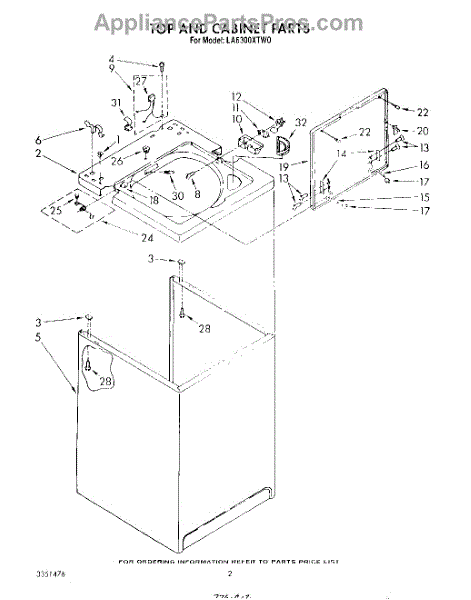 Parts for Whirlpool LA6300XTW0: 02 - Top And Cabinet , Literature And Optional Parts