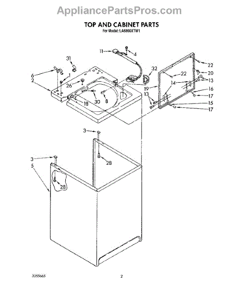 Parts for Whirlpool LA6800XTG1: 02 - Top And Cabinet, Lit / Optional Parts