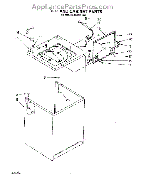 Parts for Whirlpool LA6888XTN1: 02 - Top And Cabinet, Lit / Optional Parts