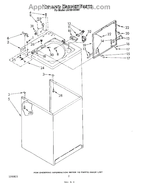 Parts for Whirlpool LA7001XSW0: 02 - Top And Cabinet , Literature And Optional Parts