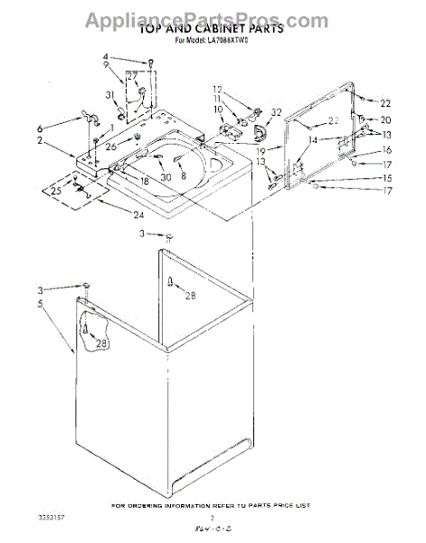 Parts for Whirlpool LA7088XTF0: 02 - Top And Cabinet , Literature And Optional Parts