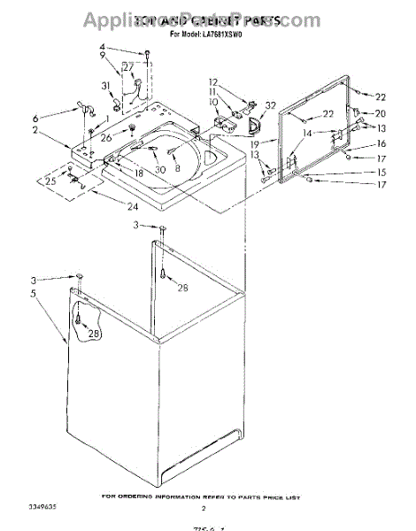 Parts for Whirlpool LA7681XSW0: 02 - Top And Cabinet , Literature And Optional Parts