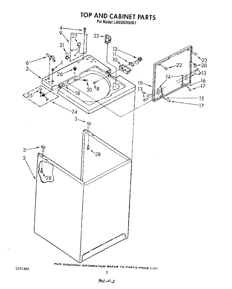 Parts for Whirlpool LA8580XWN1: 02 - Top And Cabinet , Literature And Optional Parts