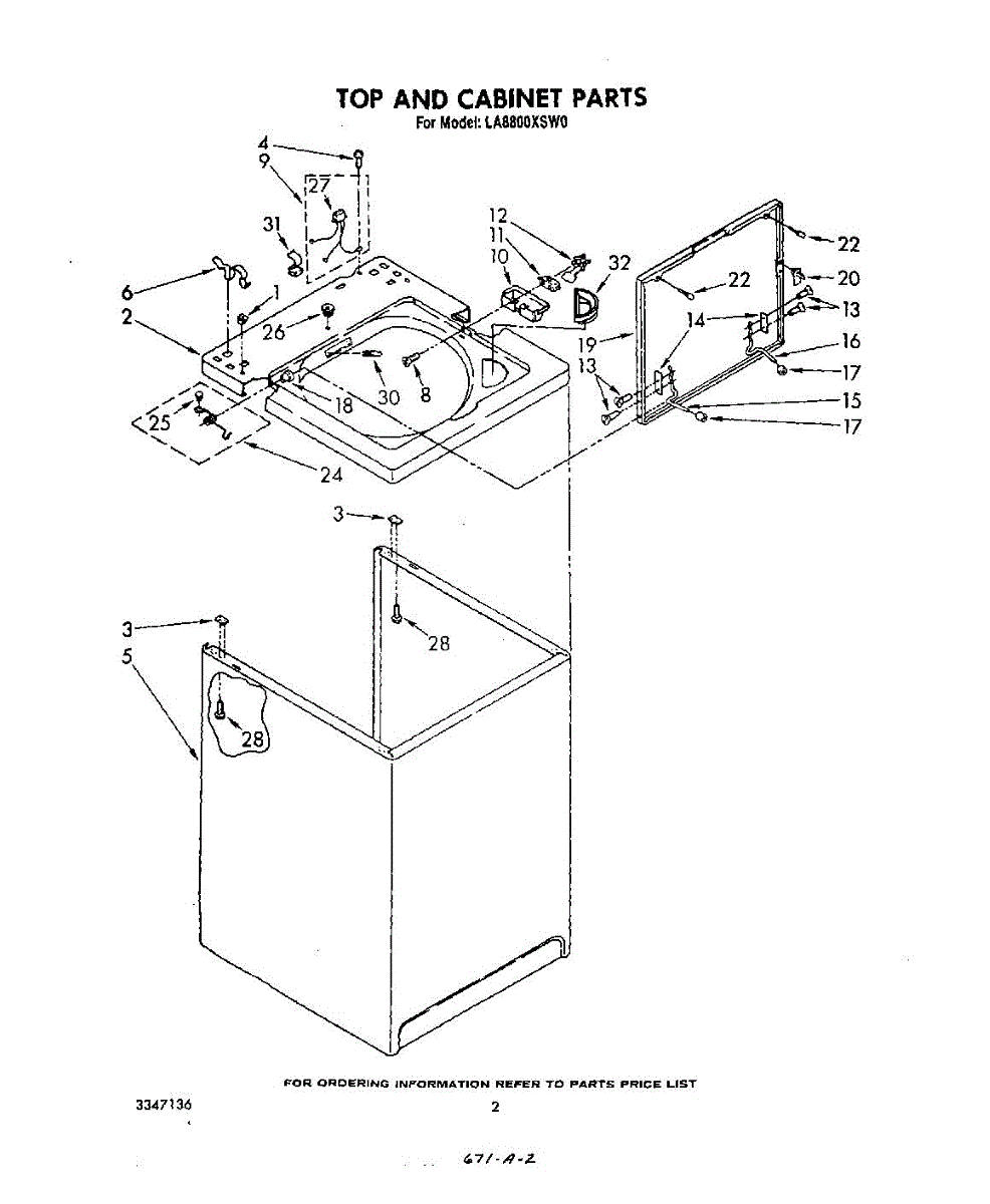 Parts for Whirlpool LA8800XSW0: 02 - Top And Cabinet , Literature And Optional Parts
