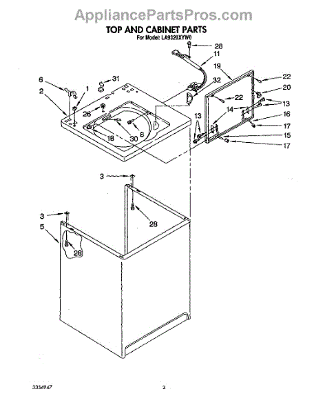 The Washer Lid Screw is an OEM part for Whirlpool washing machines. This 6-32 x .340 screw secures the washer lid to the hinge assembly, ensuring the lid opens and closes smoothly and stays securely in place during operation.