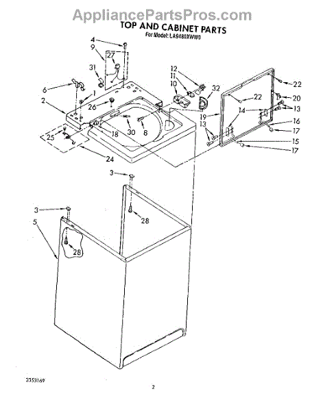 Parts for Whirlpool LA9480XWN0: 02 - Top And Cabinet, Lit / Optional Parts