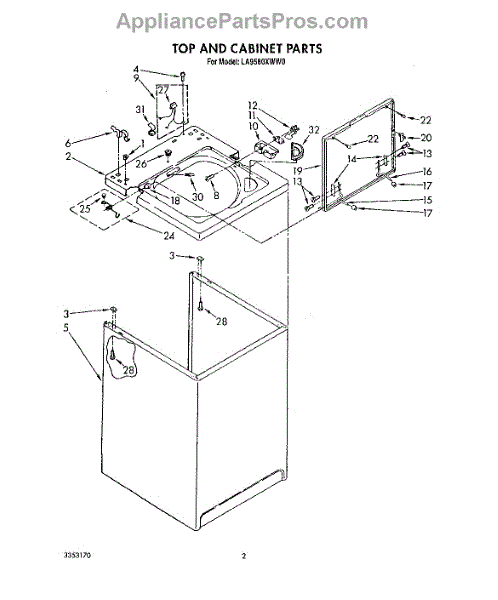 The Washer Lid Screw is an OEM part for Whirlpool washing machines. This 6-32 x .340 screw secures the washer lid to the hinge assembly, ensuring the lid opens and closes smoothly and stays securely in place during operation.
