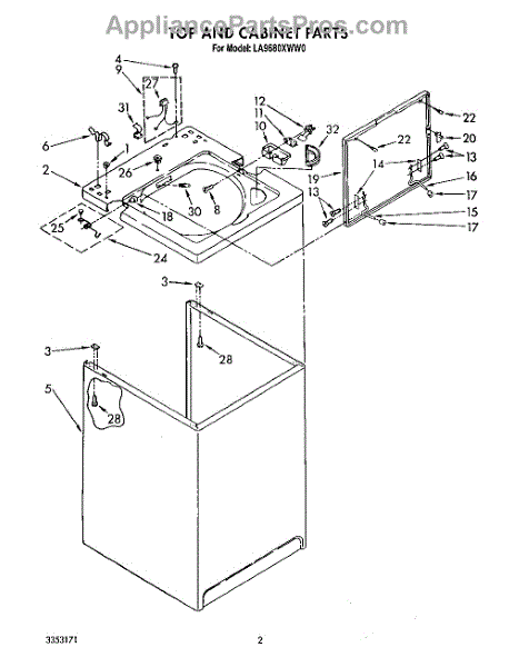 The Washer Lid Screw is an OEM part for Whirlpool washing machines. This 6-32 x .340 screw secures the washer lid to the hinge assembly, ensuring the lid opens and closes smoothly and stays securely in place during operation.