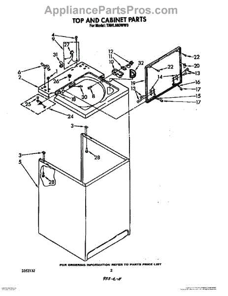 The Washer Lid Screw is an OEM part for Whirlpool washing machines. This 6-32 x .340 screw secures the washer lid to the hinge assembly, ensuring the lid opens and closes smoothly and stays securely in place during operation.
