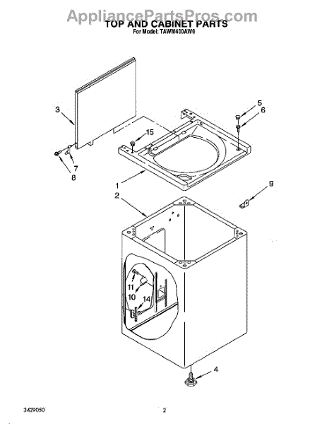 Parts for Whirlpool TAWM400AN0: 02 - Top And Cabinet, Lit / Optional Parts