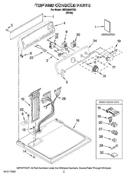 This harness clip secures appliance wiring to the cabinet or components to prevent rubbing, pinching, and interference with moving parts. It keeps wiring routed neatly for reliable operation and reduced risk of abrasion-related failures. What it does: