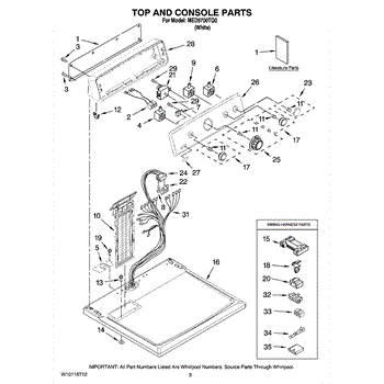 The Console Clip is an OEM part compatible with Whirlpool dryers. This clip secures the control console assembly to the top panel, ensuring it is firmly mounted during operation. Properly functioning clips are necessary to maintain the correct alignment of controls and prevent detachment.