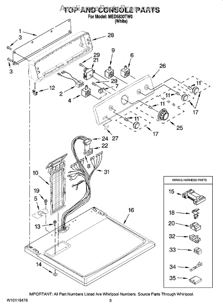 The Dryer Timer is an OEM part for Whirlpool dryers. It controls the drying cycles by regulating the duration and sequence of operations, ensuring that clothes are dried properly according to the selected settings.