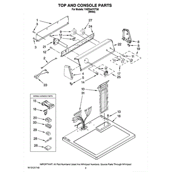 The Console Clip is an OEM part compatible with Whirlpool dryers. This clip secures the control console assembly to the top panel, ensuring it is firmly mounted during operation. Properly functioning clips are necessary to maintain the correct alignment of controls and prevent detachment.