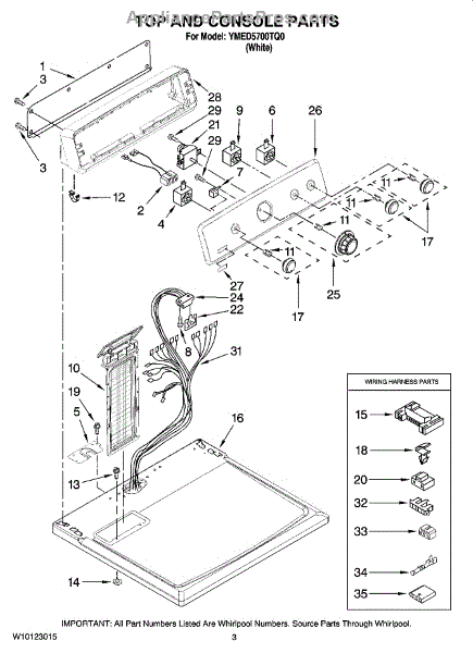 The Dryer Timer is an OEM part for Whirlpool dryers. It controls the drying cycles by regulating the duration and sequence of operations, ensuring that clothes are dried properly according to the selected settings.