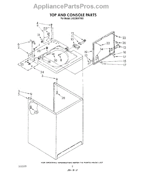 Parts for Whirlpool LA5280XTW0: 02 - Top And Console , Literature And Optional Parts