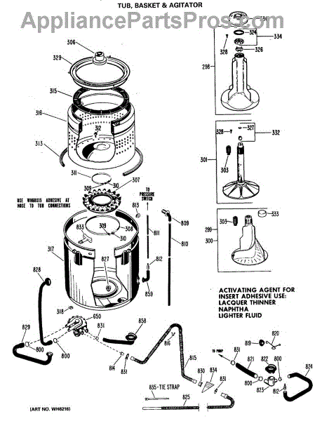 Parts for Ge WLW3300BNL: 02 - Tub, Basket & Agitator Parts