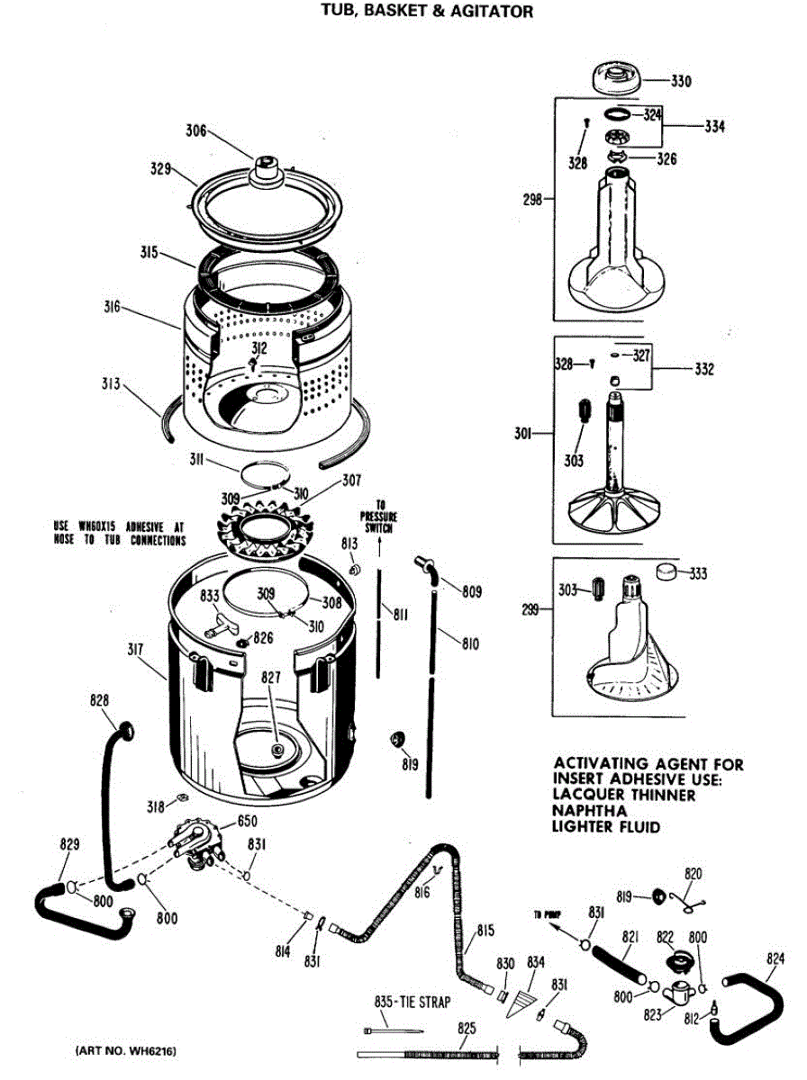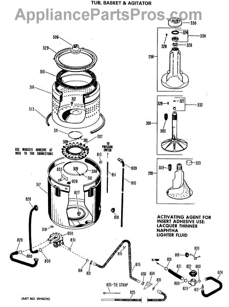 Parts for Ge WLW3310BNL: 02 - Tub, Basket & Agitator Parts