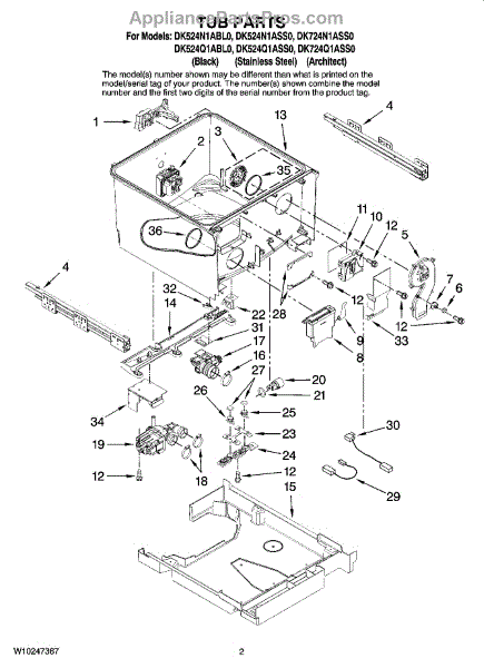 Parts for Whirlpool DK524Q1ABL0: 02 - Tub Parts