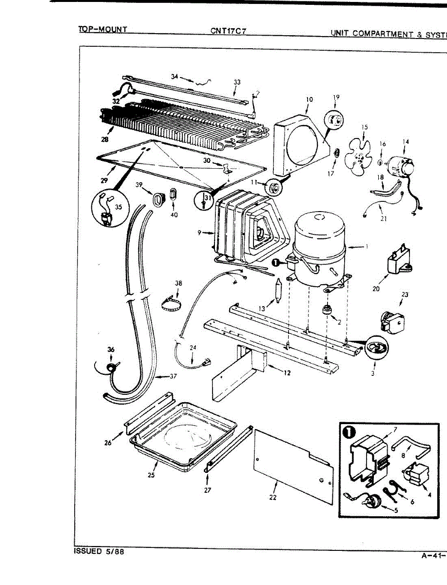 Plastic defrost pan. Evaporator pan hangs from side rails and rests on compressor.