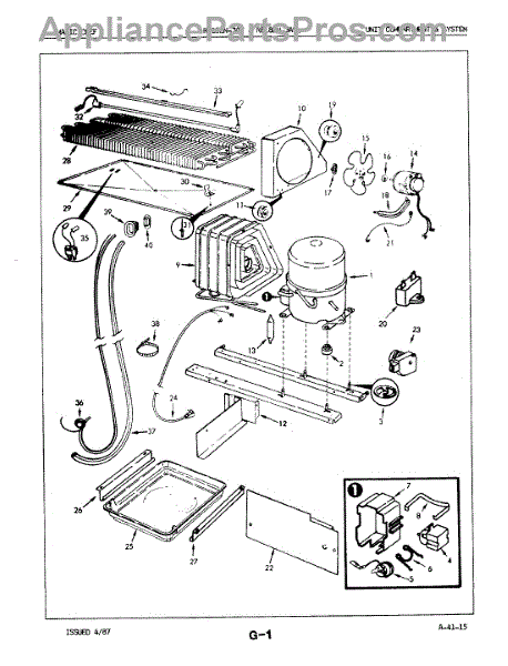 Plastic defrost pan. Evaporator pan hangs from side rails and rests on compressor.