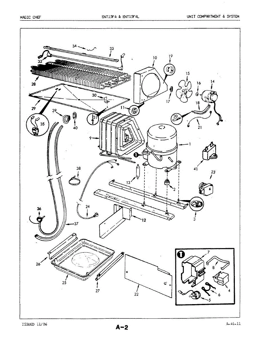 Plastic defrost pan. Evaporator pan hangs from side rails and rests on compressor.