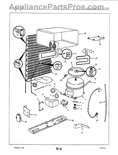 This factory screw secures appliance components to their mounting points. Replace missing, worn, or stripped hardware to restore a tight fit, proper alignment, and quieter operation across the affected assembly.