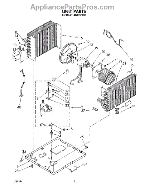 Parts for Whirlpool AC1352XS0: 02 - Unit Parts