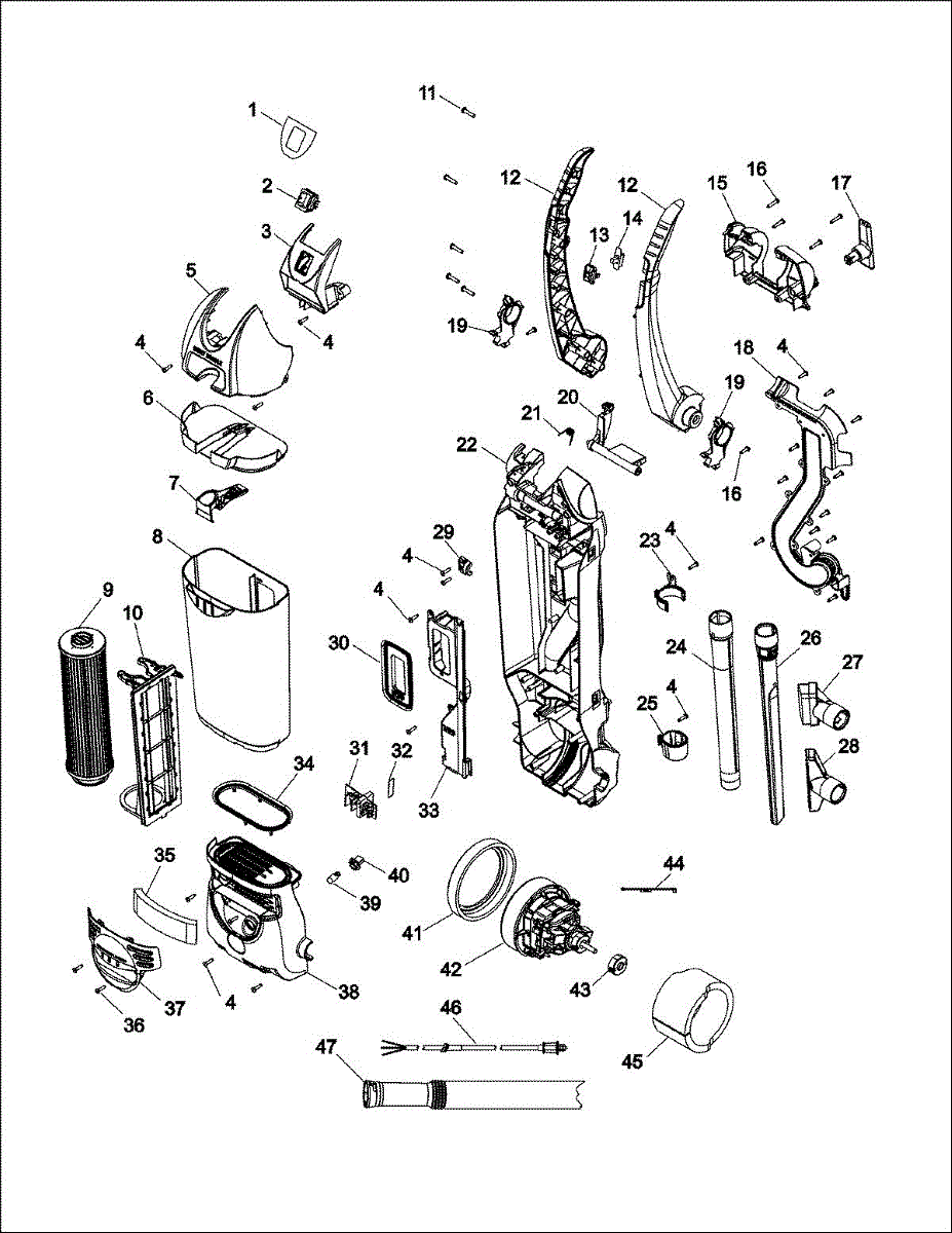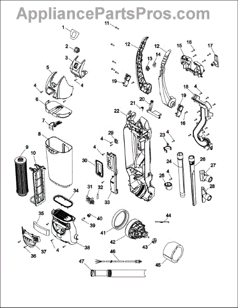 Parts for Hoover C1660900: 02 - Upper Assembly Parts