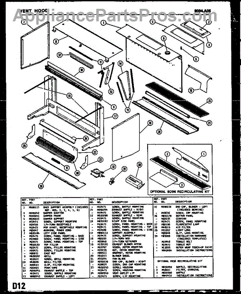 Parts for Amana 8094.A05: 02 - Vent Hood Parts