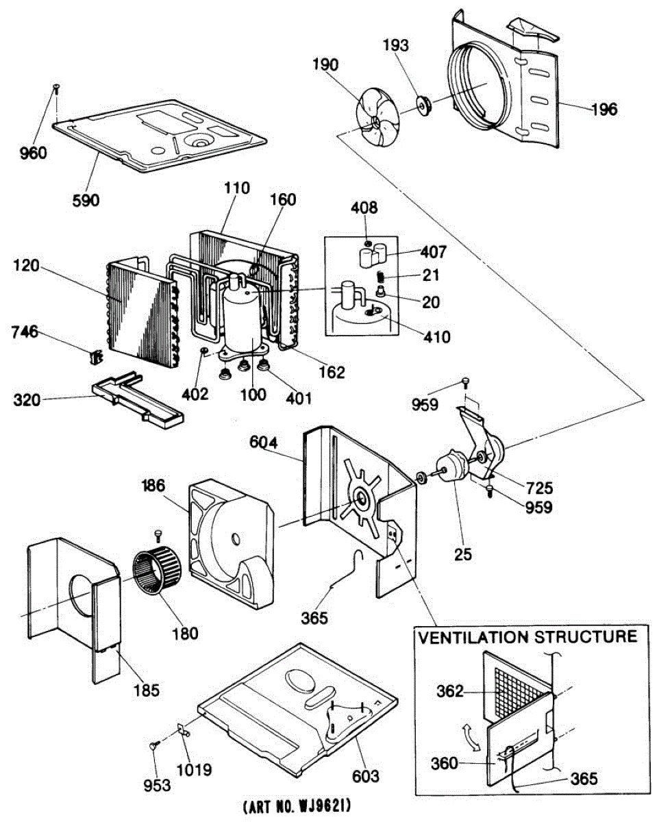 Parts for Ge KVM21DAM1: 02 - Ventilation Structure Parts