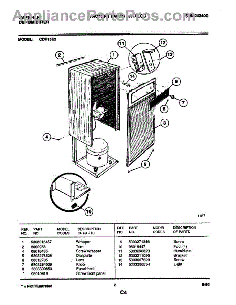 Parts for Frigidaire CDH15E2: 02 - Wrapper Parts