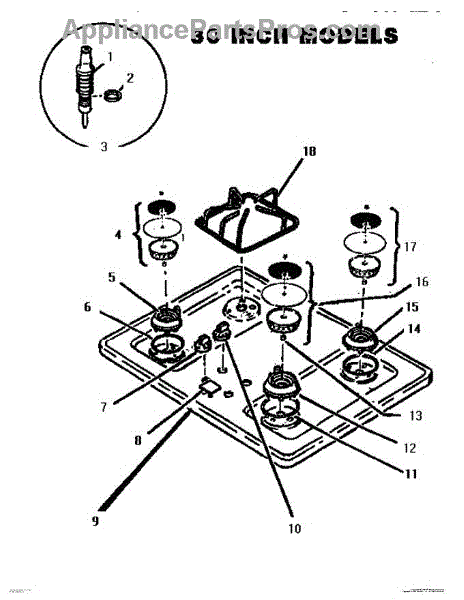 Parts for Thermador SGCV36: 03 - 30 Inch Cooktop Parts