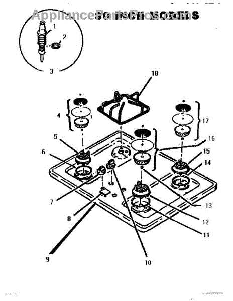 Parts for Thermador SGCV36G02: 03 - 30 Inch Cooktop Parts