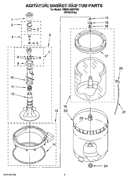 Parts for Maytag 7MMSL6955TW0: 03 - Agitator, Basket And Tub Parts