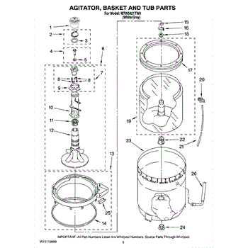 You should replace this agitator bolt washer if it becomes worn out, cracked, or lost. Causes of a bad washer can include regular wear and tear, exposure to harsh detergents, or high levels of agitation that can degrade the material over time.