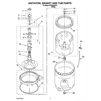 The Whirlpool top load washer agitator inner cap seal is an OEM replacement part responsible for providing a tight seal and preventing water from leaking in to the agitator. The inner cap seal is located underneath the agitator cap at the top of the agitator assembly.
