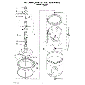 The Complete Agitator Assembly is an OEM part for Whirlpool washing machines. This assembly includes the central vertical agitator component along with the retainer ring. Together they are responsible for the agitation and rubbing motions that work to remove soils and stains from clothing during wash cycles. Causes of a bad agitator assembly can include wear and tear leading to wobbly or loose motions, cracks in plastic components from repeated impacts, or corrosion of metal components. Symptoms of a bad complete agitator assembly include: