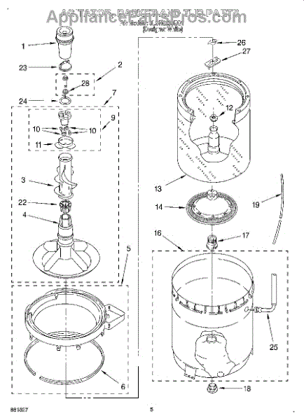 This is an inner tub basket intended for use with washing machines and combination washers and dryers. It is located inside the washing machine in the middle of the appliance. The inner tub basket is responsible for holding clothing during a washing cycle. It has an agitator in the middle and sides with holes so that water can leave when the tub is spinning. It is attached to the outer tub, which seals in the water.The inner tub basket can become damaged and cause loud noises, leak, or fail to drain. If this occurs, this component will need to be replaced. Basic tools will be needed for the process. Make sure the washing machine is unplugged for safety. The hoses will need to be removed before taking out the inner tub basket and replacing it with a new one. The inner tub basket is sold on an individual basis. It is an authentic OEM replacement part that is sourced directly from the manufacture. This part is compatible with washing machines and washer/dryer combination appliances made by Inglis, Estate, Admiral, Crosley, Roper, Magic Chef, Amana, KitchenAid, Maytag, Kenmore, and Whirlpool.